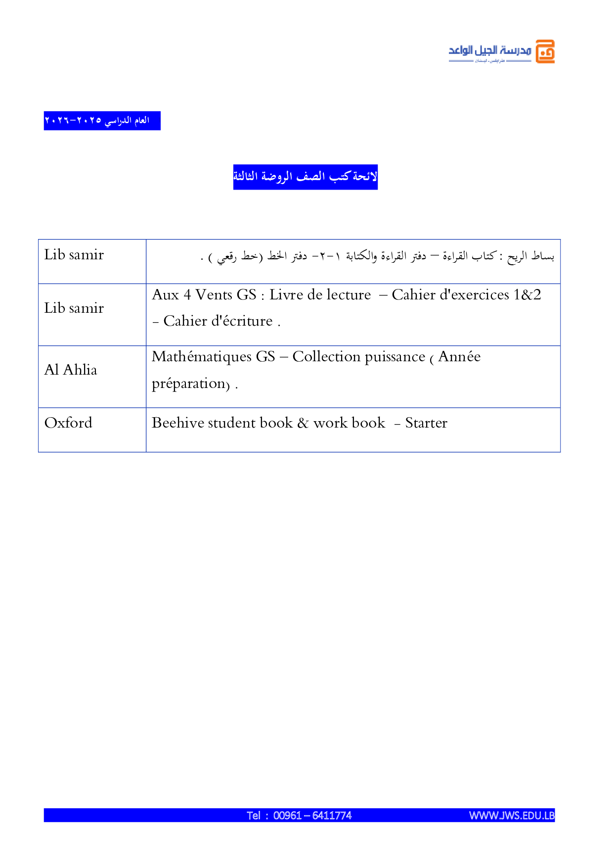 Home > Uncategorized > لوائح الكتب لمرحلة الروضات – الفرع الفرنسي